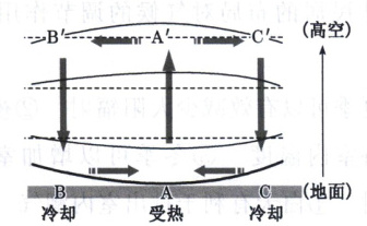 注:虚线代表地面受热均匀时的等压面,实线代表地面受热不均匀时的等压面。
