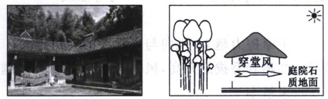 【解析】:1. 石质地面比热容小,升温快,使庭院气温较高,与相邻区域(如植被区)温差增大,气压差增强,从而促进空气流动,增强穿堂风。