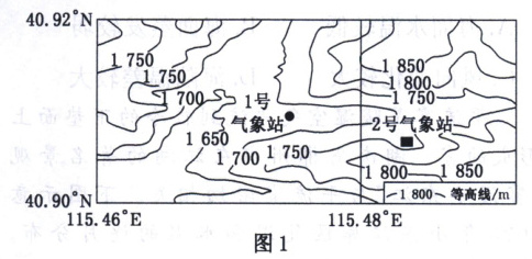 1. B 解析:第1题,从图1中可以看出1号气象站和2号气象站的海拔存在差异,1号气象站的海拔在1 650—1 700 m之间,2号气象站的海拔在1 700—1 750 m之间,2号气象站的海拔高于1号气象站,因此气温日温差小,气压低等,综上所述,A、C、D错误,B正确。。