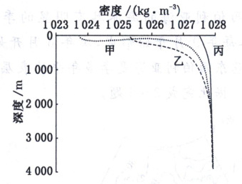 5. 相比乙和丙海域,在深度500m内,甲海域海水密度变化显著,其主导影响因素是(