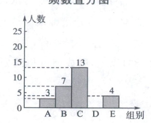 (1)补全频数直方图(C组频数为13)。