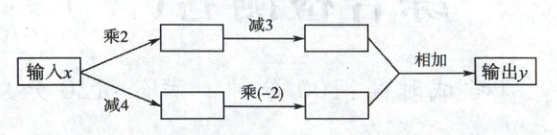 1. 第一条路径:$x$乘2得$2x$,再减3得$2x - 3$;