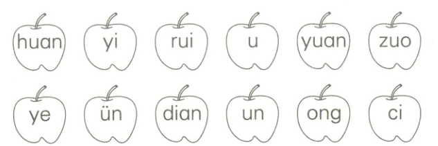 二、请把音节涂上红色,把韵母涂上绿色。(6 分)