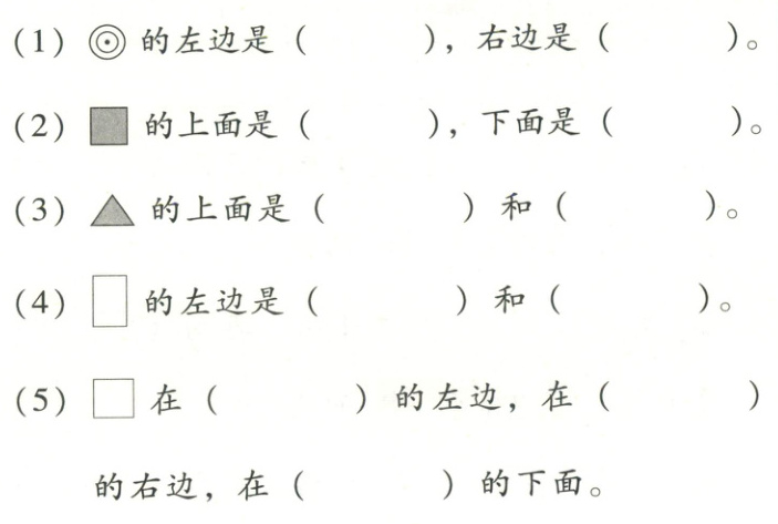 (1)■ ● (2)☆ ▲ (3)☆ ■ (4)☆ △ (5)○ ▲ ⊙