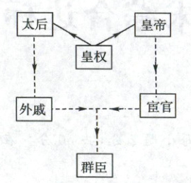 21. 下图是我国古代某个王朝中期以后的政治生态示意图,这个王朝是(
