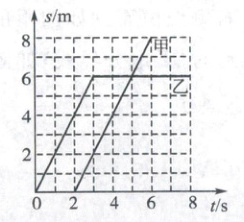 8. 如图所示是在同一位置开始同向运动的甲、乙两物体路程 $ s $ 与时间 $ t $ 的关系图像,下列说法正确的是(
