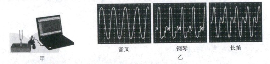 3. 用图甲装置分别将音叉、钢琴与长笛发出的声音信号输入计算机,在显示器上观察到图乙所示三种声音的波形.下列有关声音波形图说法正确的是(