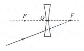 (在图中,从入射光线与凹透镜光心O的交点处,沿入射光线的方向画出折射光线,使其穿过凹透镜后方向不变。)