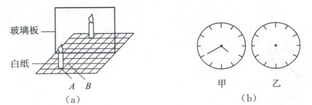 (5) 如图(b)甲所示是从平面镜中看到墙上的时钟的像,请在乙图上画出时钟的实际时间.