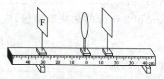 .(2) 凸透镜固定在光具座零刻度线上,小明将光源移至40 cm时,在光屏上出现倒立、缩小的
