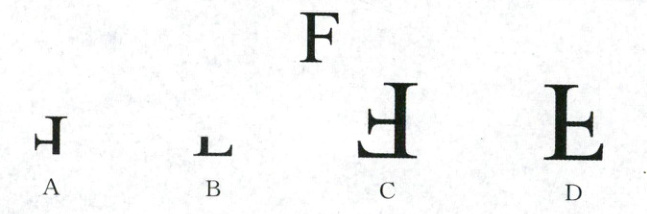 (4) 光源“F”放在15 cm处,其大小如图所示,凸透镜固定在光具座零刻度线上.如果用遮光罩将凸透镜的上半部分罩住,则光屏上所成的像是下图中的