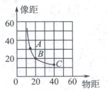 18. 在做“探究凸透镜成像的规律”实验时,某实验小组所描绘的图线如图所示. 图线中 $A$、$B$、$C$ 三点分别与蜡烛在光具座上移动过程中的三个位置相对应. 则下列说法不正确的是(
