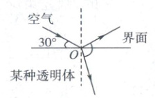 16. 如图,一束单色光从空气中与界面成 $30^{\circ}$ 的夹角射入某透明介质,已知反射光线与折射光线的夹角为 $90^{\circ}$,下列说法正确的是(
