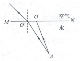 30. 潭清疑水浅,安全记心间. 如图,$A$ 是水池底某点,请大致作出光线 $AO$ 的折射光线以及人从岸上看到 $A$ 的像 $A'$.