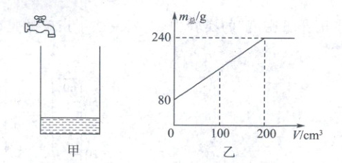 6. 如图甲所示的杯中已装有$20cm^{3}$的某种液体,打开龙头,向杯中继续注入该液体,杯中液体和杯子的总质量$m_{总}与从龙头中流出液体体积V$的关系如图乙所示。下列说法正确的是(