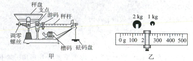 16. 如图甲所示为商店里使用的台秤,其工作原理与天平相同。使用时,先将游码移至秤杆左端的零刻度处,若发现秤杆右端上翘,则调零螺丝应向