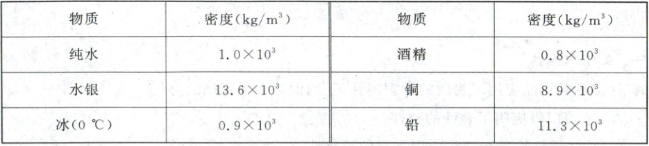 14. 下表给出常温常压下的一些物质的密度。下列说法中正确的是(