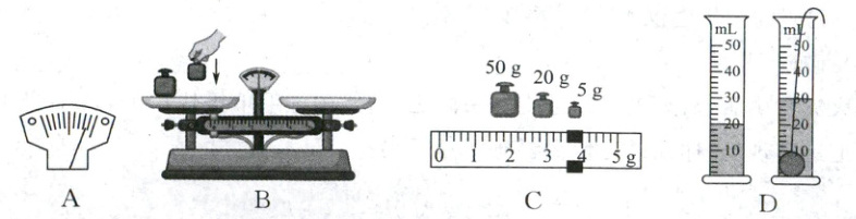 。(3) 改正错误后,小明正确测出金属球的质量和体积,如图C和D所示,金属球的密度为