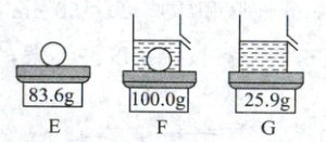 (4) 小明用电子秤测出金属球的质量,如图E所示。