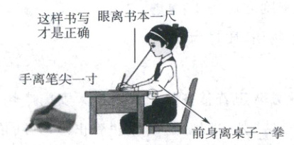 3. 不正确坐姿可能会造成近视眼或颈椎病,正确坐姿距离要求“一尺一寸一拳头”,如图所示. “一尺”是指眼睛到书本的距离,“一尺”约为(