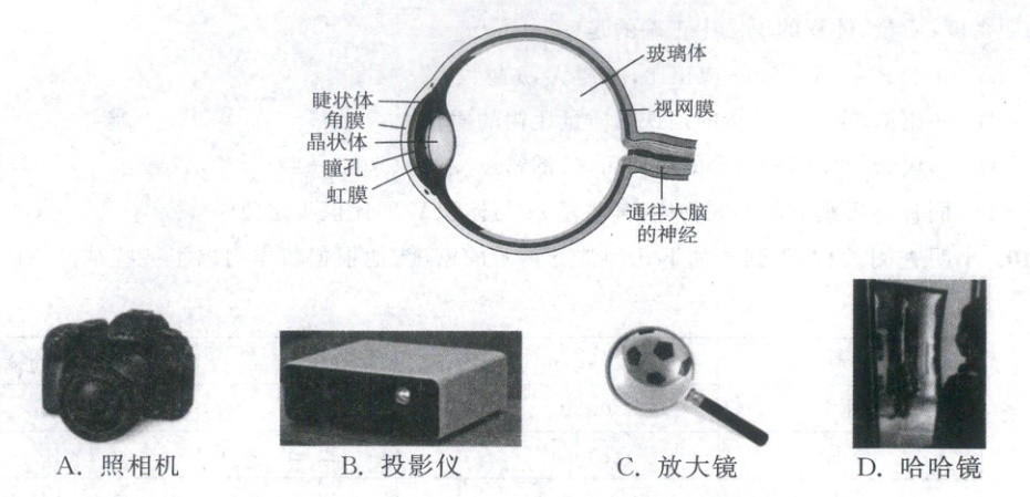 6. 眼睛是心灵的窗户,眼球的结构如图所示,眼球与下列哪种光学器材成像原理相符(