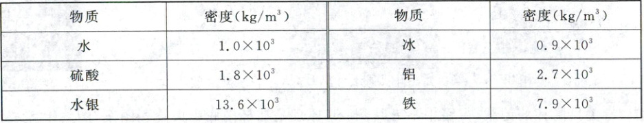 10. 小明查阅教材,得到了如下几种常见物质的密度,他根据数据得出了一些结论,其中正确的是(