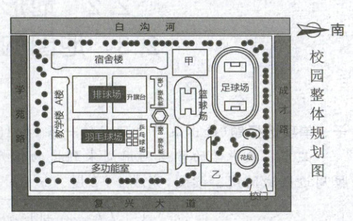 (4)同学们通过了解校园各功能区的布局,分析各功能区的合理性,为美化校园,提升文化内涵提出见解。校园里有甲、乙两块空地,学校要在其中选择一处修建学生宿舍楼,应建在______。说出你的理由:______。