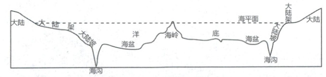 如同陆地地形一样,海洋底部也是高低起伏,形态多样。读海底地形剖面示意图,完成 3—4 题。