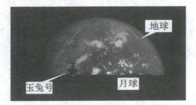 玉兔号月球车被人们戏称为“看过最多星星的兔子”。下图为玉兔号在月球上与地球的合影。据此完成 1—2 题。