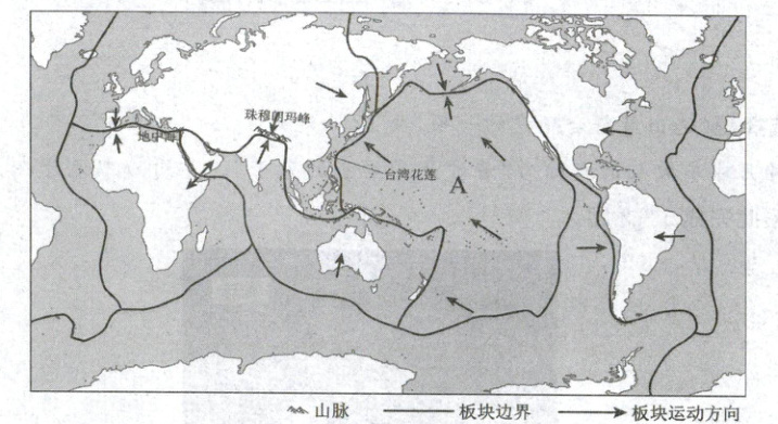材料二 我国 2020 年喜马拉雅山珠峰高程测量登山队于 5 月 27 日成功登上珠穆朗玛峰,量出珠峰又“长高”了。下图为世界六大板块分布图。