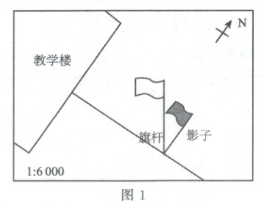 济南某中学开展了主题为“测量校园旗杆影子长短变化”的实践活动。图1为校园局部示意图、图2为学生绘制的“二分二至”正午旗杆影子长短变化示意图。据此完成9—11题。