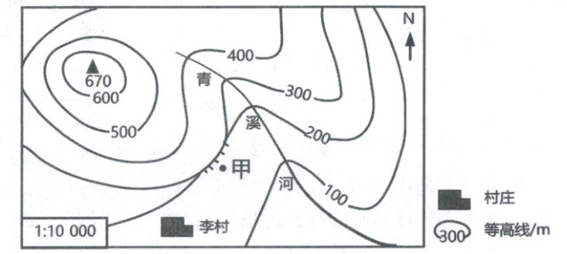 8. 李村附近的甲地适宜开发的旅游项目是(