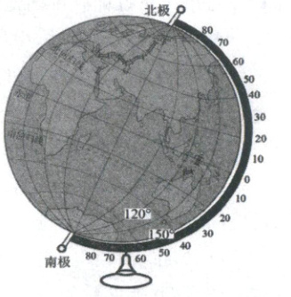 8. 读地球仪示意图,判断关于地球仪的叙述,错误的是(