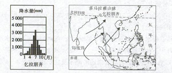 (3) 乞拉朋齐是世界年降水量最多的地方,被称为世界“雨极”。从上图中可知,乞拉朋齐一年中降水的季节变化特点是