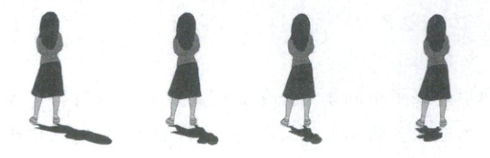 暑假,浏阳$(28^{\circ}N)$某中学地理实践小组进行研究性学习。下图是他们在校园内给老师拍摄的四张从清晨到正午的背影照片。四个时刻,拍摄者和被拍摄者位置完全相同。读图,完成10—11题。