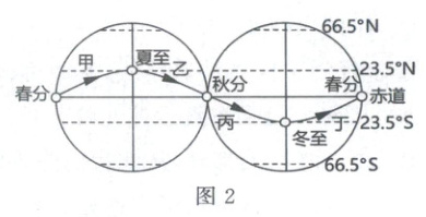 D. 昼短夜长,丁
