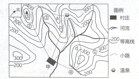 15. “饭后走一走,活到九十九”,生活在甲村的老年人饭后散步前往温泉,最适合的路线是(