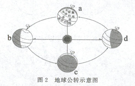 (4) 当太阳直射D点时,地球位于图2地球公转轨道示意图上的