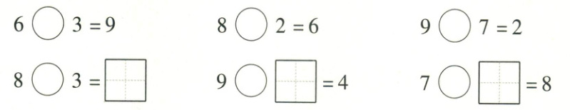 五、在下面的$□$里填上合适的数,在$◯$里填上“$+$”或“$-$”。