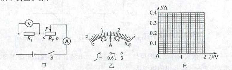 A(如图乙所示).(4) 根据表格数据,在图丙中画出I-U关系图像.