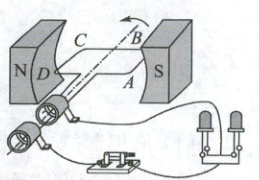 (2)连续转动线圈,在实验中将会看到两LED灯交替发光,说明线圈中产生的电流方向