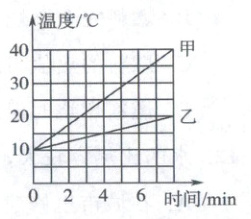D.第$5min$时甲的温度比乙高,说明甲吸收的热量更多