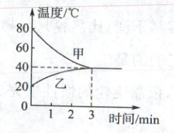 19. 如图所示是冷水与热水混合时温度随时间变化的图像,甲、乙通过