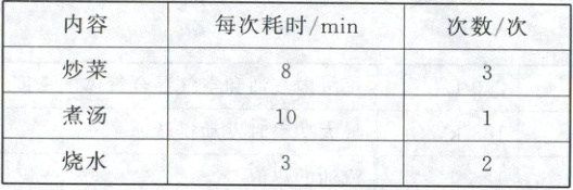 (4)小刚同学打算展示在劳动课上学习的烹饪技能,为家人做顿可口饭菜,下表是他出发前做的规划,则小刚至少应携带几个如图3所示的储气罐?