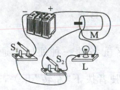 D.同时闭合$S_1、$$S_2,$灯泡L和电动机M并联