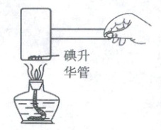 17. 某同学做“碘的升华”实验时,用酒精灯直接对放有少量固态碘的碘升华管加热,如图所示。发现碘升华管内出现紫色的碘蒸气,他认为碘从固态变成了气态,是升华现象。经查阅资料发现:常压下,碘的熔点为$114\ ^{\circ}C$,碘的沸点为$184\ ^{\circ}C$,酒精灯火焰的温度约$500\ ^{\circ}C$。根据这些资料,你认为他所做的实验中,能否得出碘升华的结论?原因是什么?