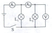 4. 如图所示,开关 $ S $ 闭合,两个灯均发光,电流表 $ A_1 $ 的示数为 $ 0.8 \, A $,电流表 $ A_2 $ 的示数为 $ 0.5 \, A $,电压表的示数为 $ 8 \, V $.下列判断不正确的是(