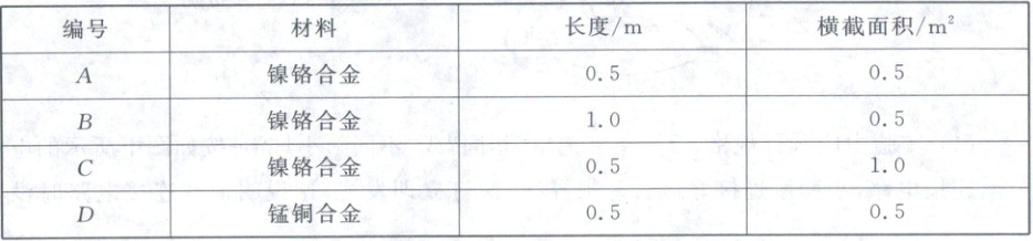 实验室提供了 $ 4 $ 根电阻丝,其规格、材料如下表所示.