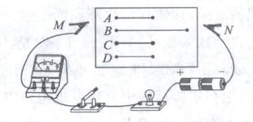 的两根电阻丝分别接入电路进行实验.(3)分别将 $ A $ 和 $ D $ 两电阻丝接入图示电路中 $ M $、$ N $ 两点间,电流表示数不相同.由此,初步得到的结论是:当长度和横截面积相同时,导体电阻跟