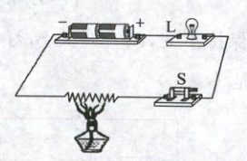16. 用电源、灯泡、导线、开关和钨丝组成如图所示的电路,闭合开关,小灯泡发光;再用酒精灯对钨丝加热,会发现灯泡亮度变